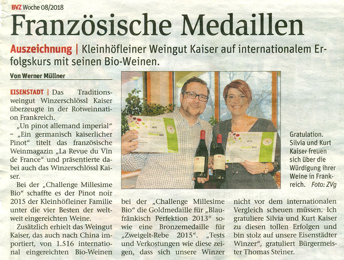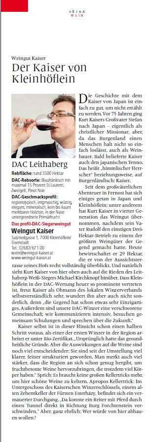 Das Weingut Kaiser in Kleinhöflein bei Eisenstadt hält für vielerlei Geschmäcker herrliche Rebensäfte mit vorzüglichem Preis-Wert-Verhältnis bereit. Überregionale Bekanntheit erlangte der Betrieb mit einem Gewächs, das dem japanischen Monarchen gewidmet ist.